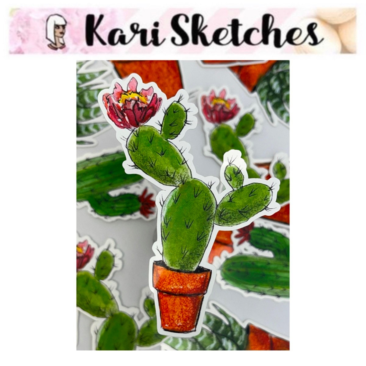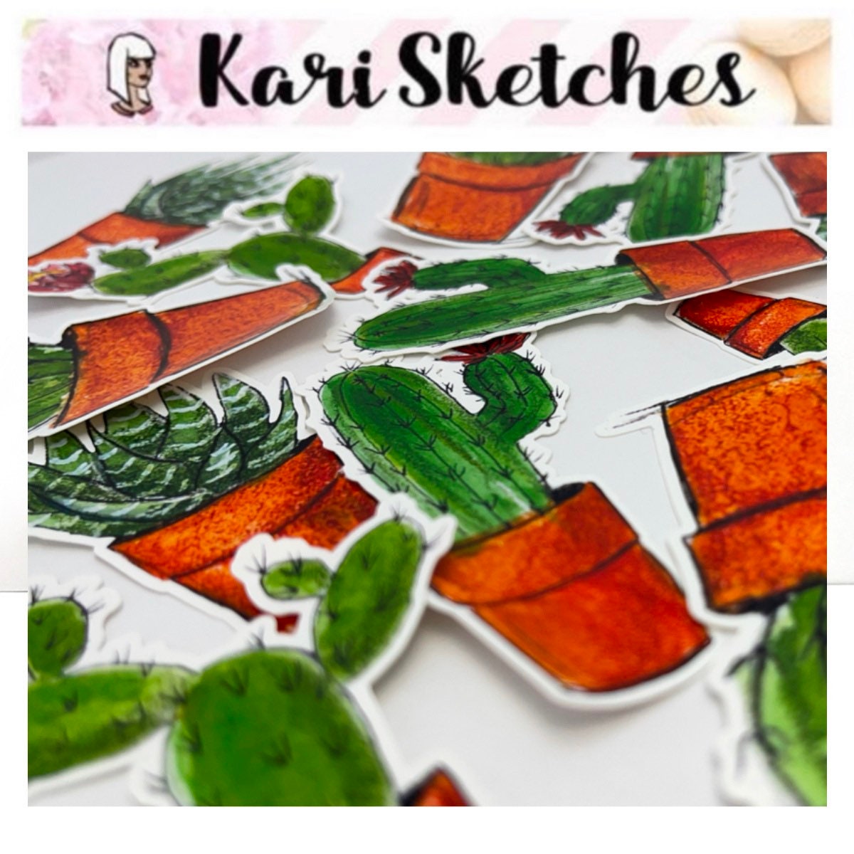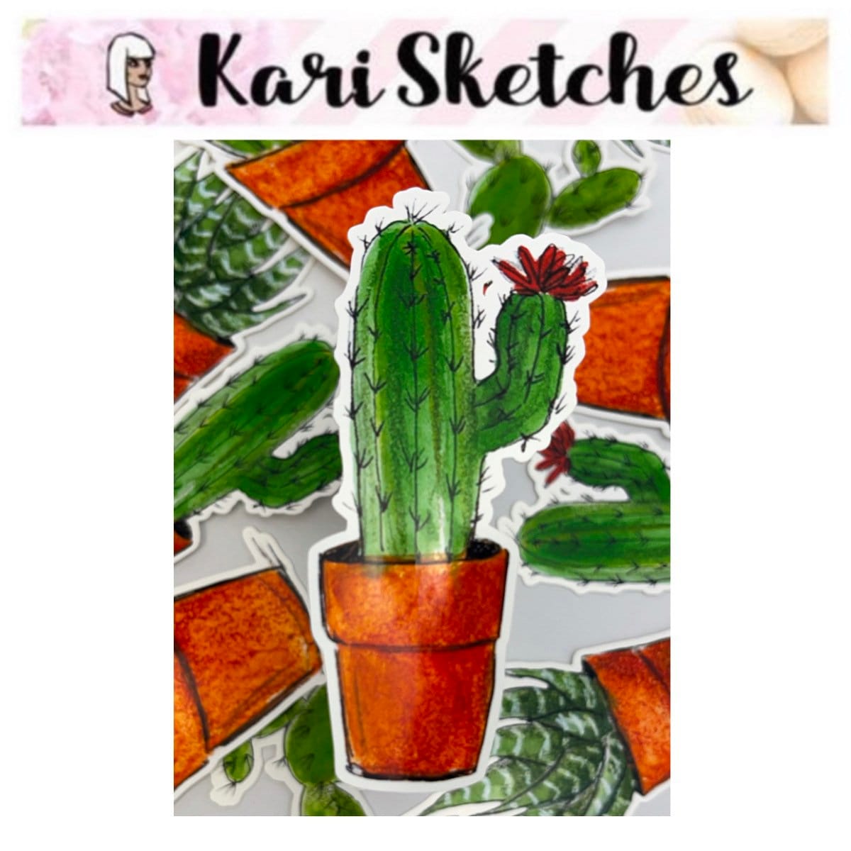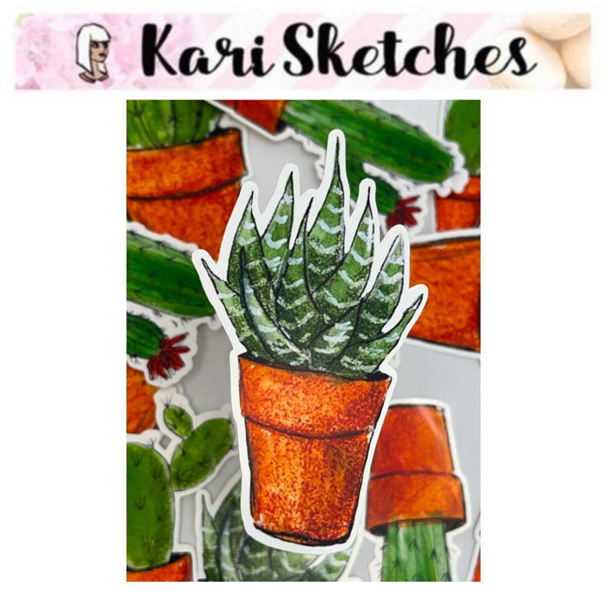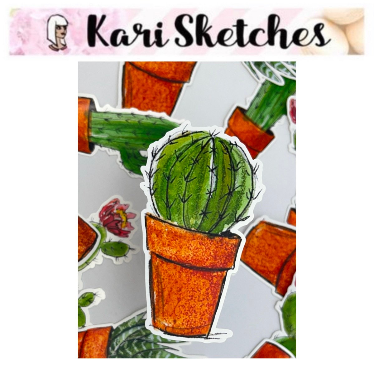 Succulent potted plant heaven! Beautifully hand-drawn cactus to bring a bit of joy to your life because who doesn’t love a low-maintenance plant? And you don’t even need to water this one!