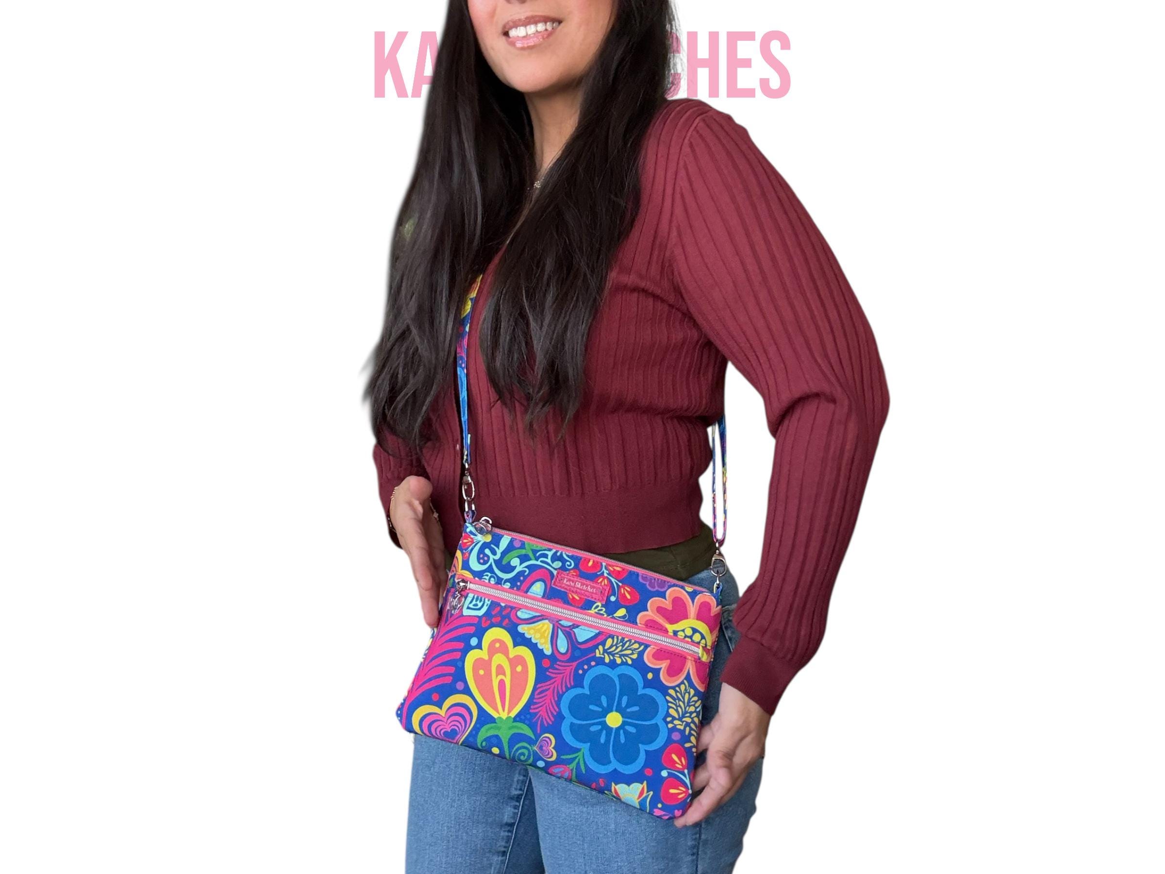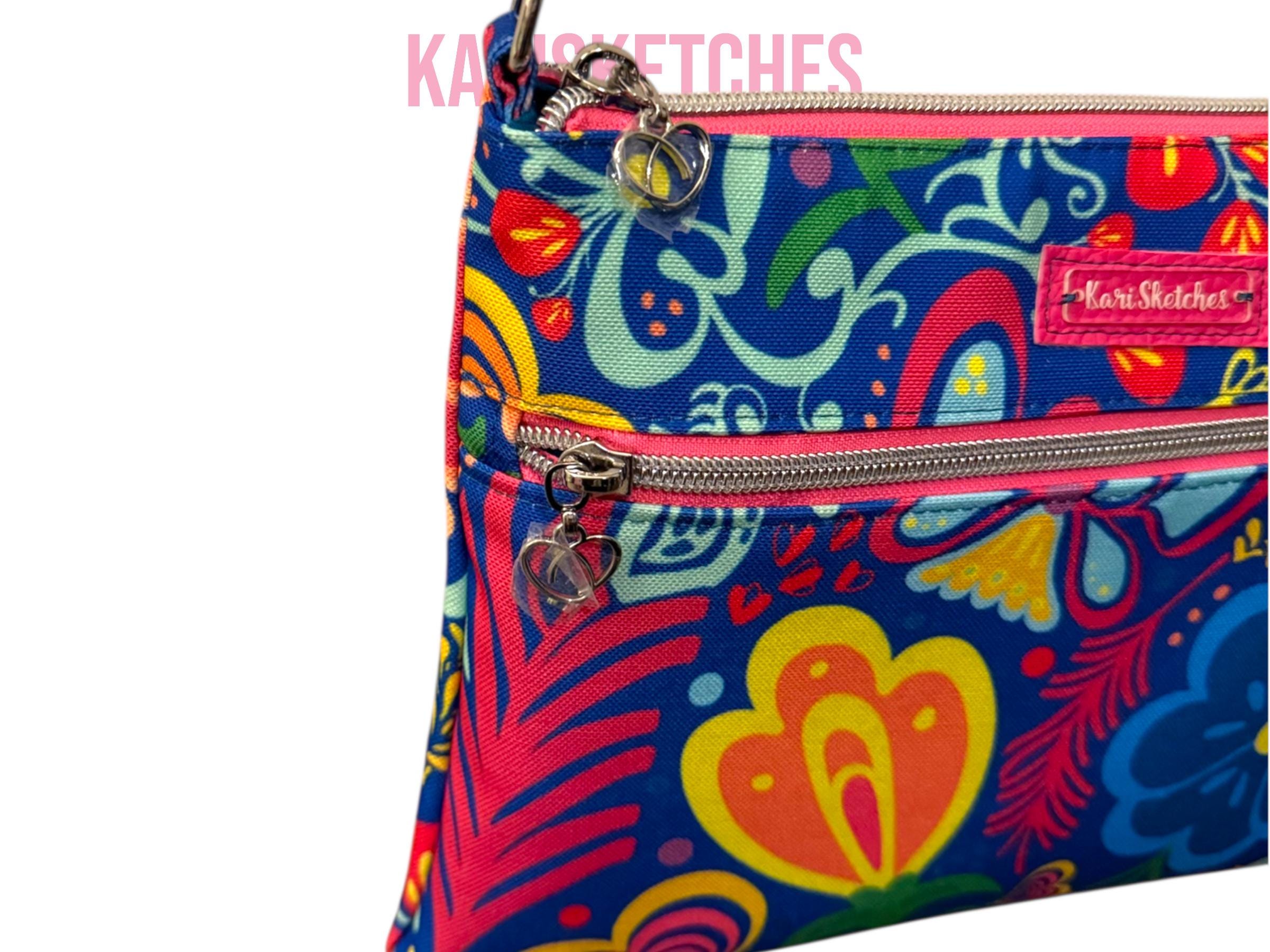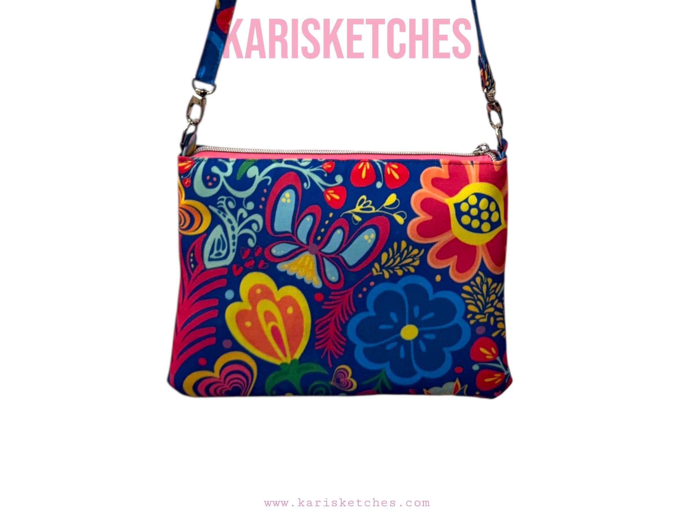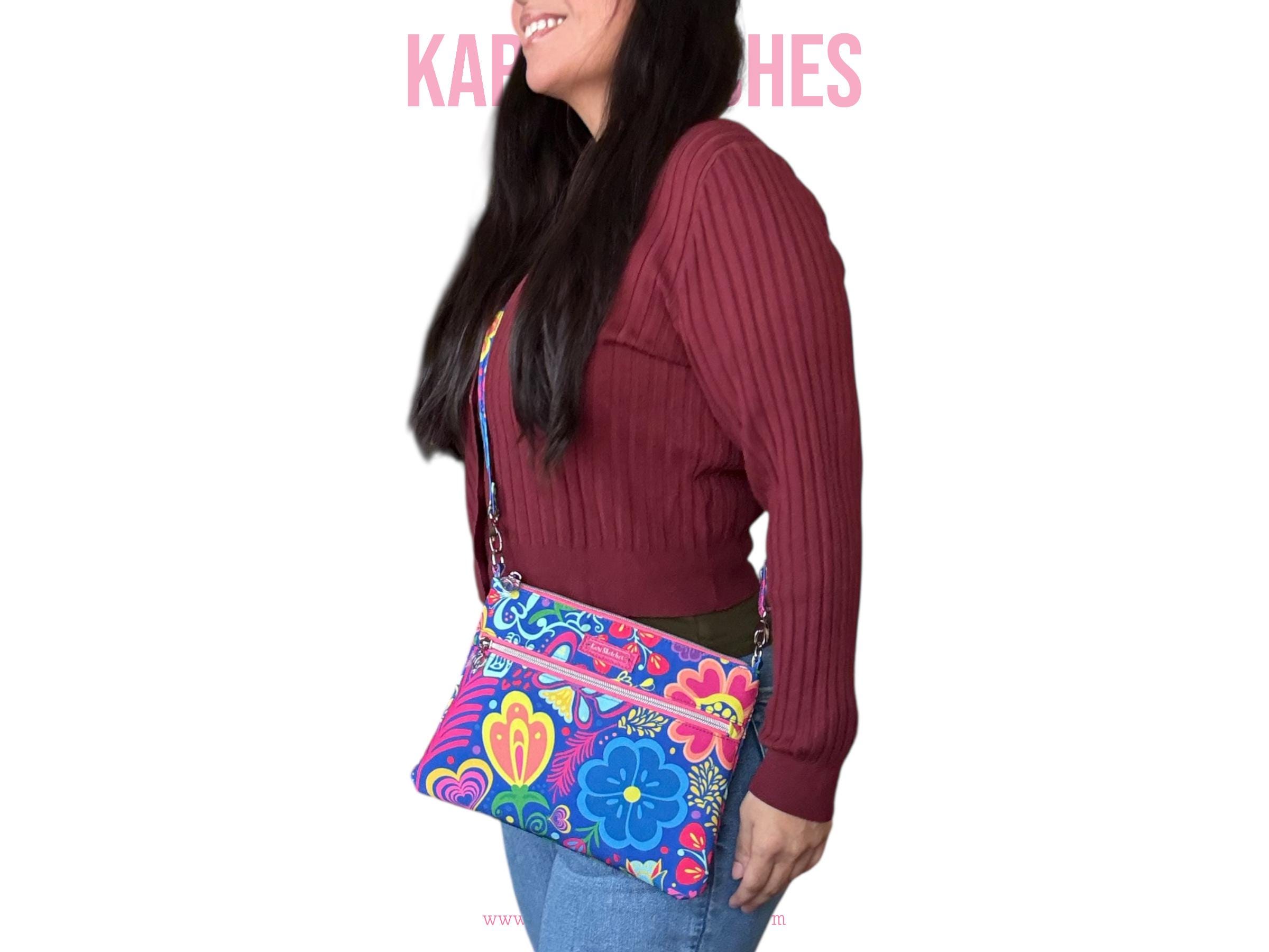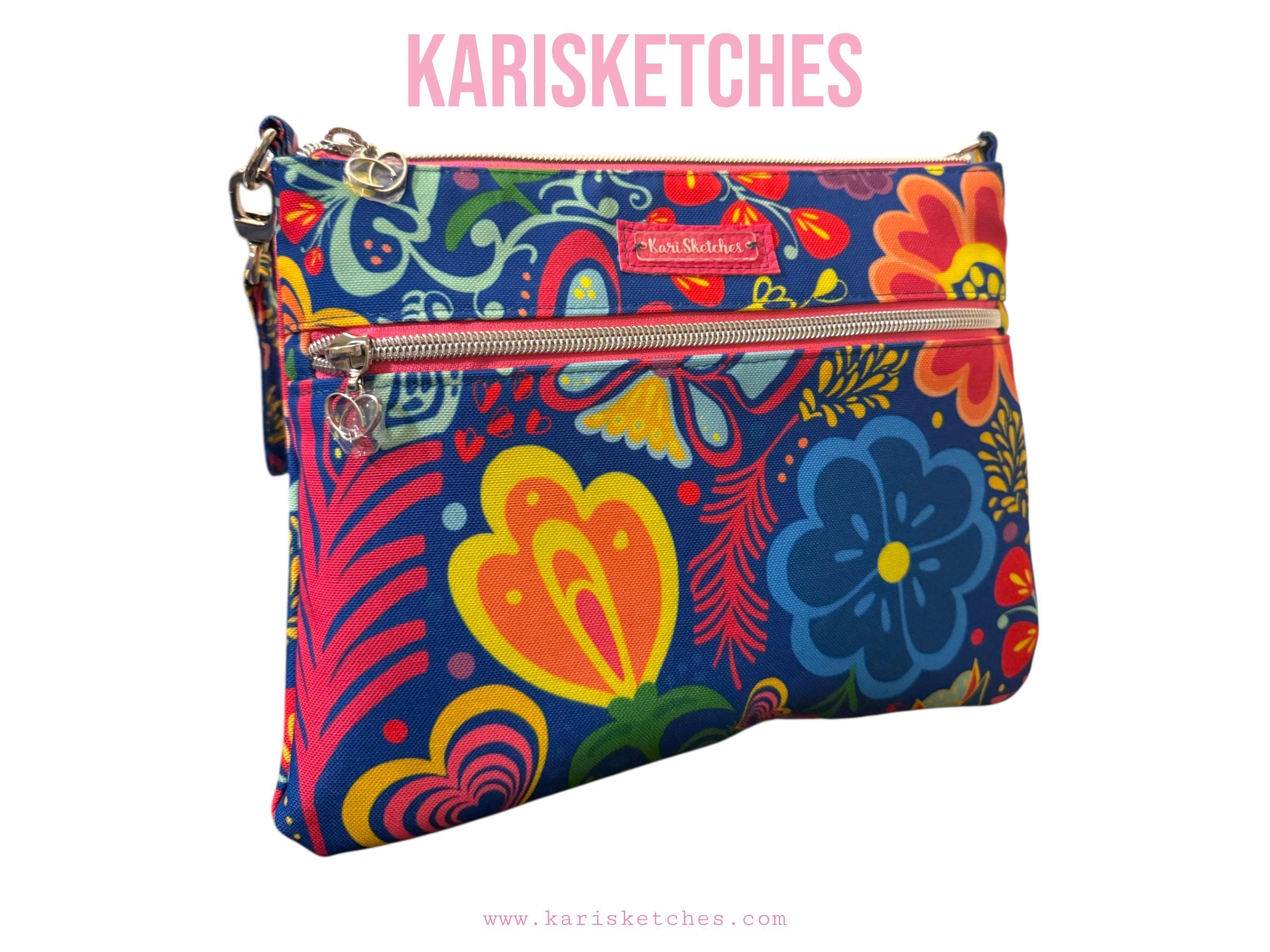This wonderful handmade recycled canvas crossbody bag embellished with high-end hardware is a must-own. This medium-sized double-zippered satchel was crafted by hand with Spoonflower’s 100% Recycled Canvas and Emmaline’s hardware. Contains an interior zip pocket for those everyday important accessories. It is lined with Kari Sketches signature 100% cotton fabric. It also includes an adjustable crossbody strap. The bag opens wide to easily access all its contents. Making this pouchette your absolute go-to for both quick trips to the grocery store or even for jet-setting weekend getaways. The front zippered pocket is secure but accessible. These are just a few of the reasons you’ll want to wear it all the time.