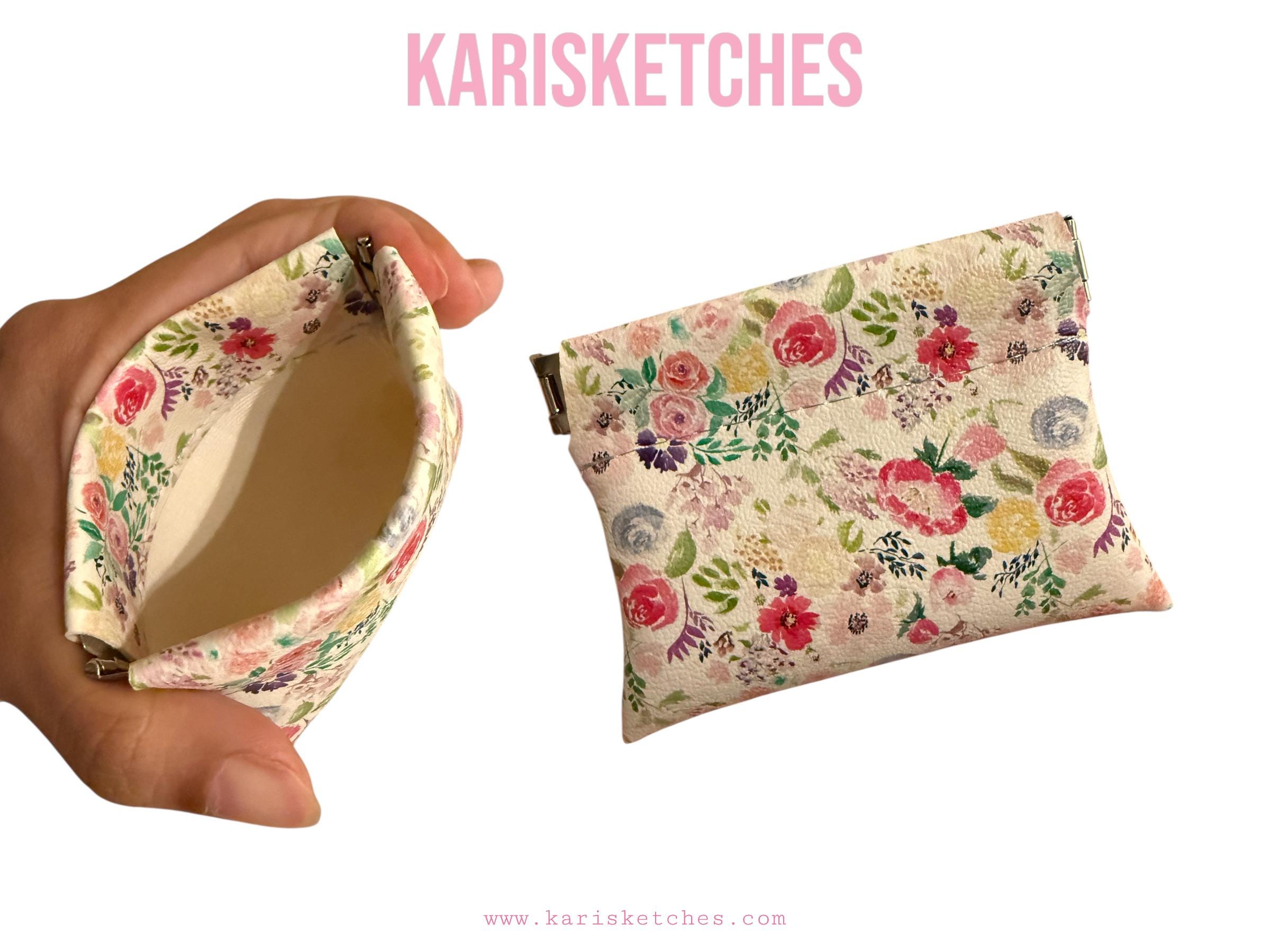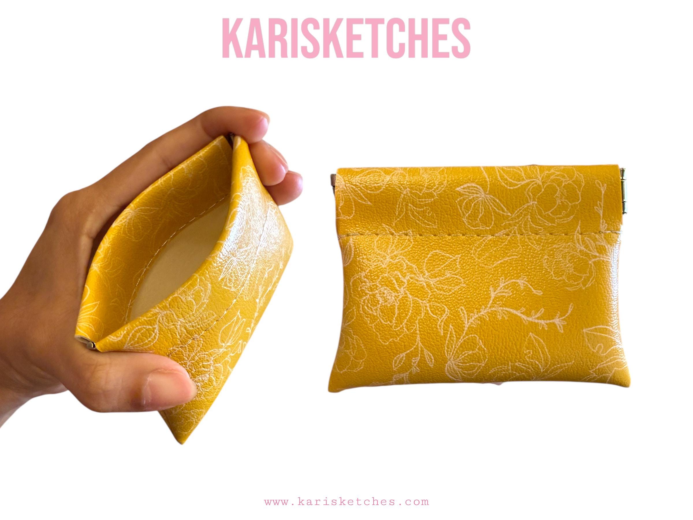 The Pop Open Coin Pouch measures 4” W x 3” H x ½” D and is a fun pouch to hold all that loose change or smaller items you may wish to secure!! This coin pouch has a hinged flex frame that when it is squeezed it will pop open.