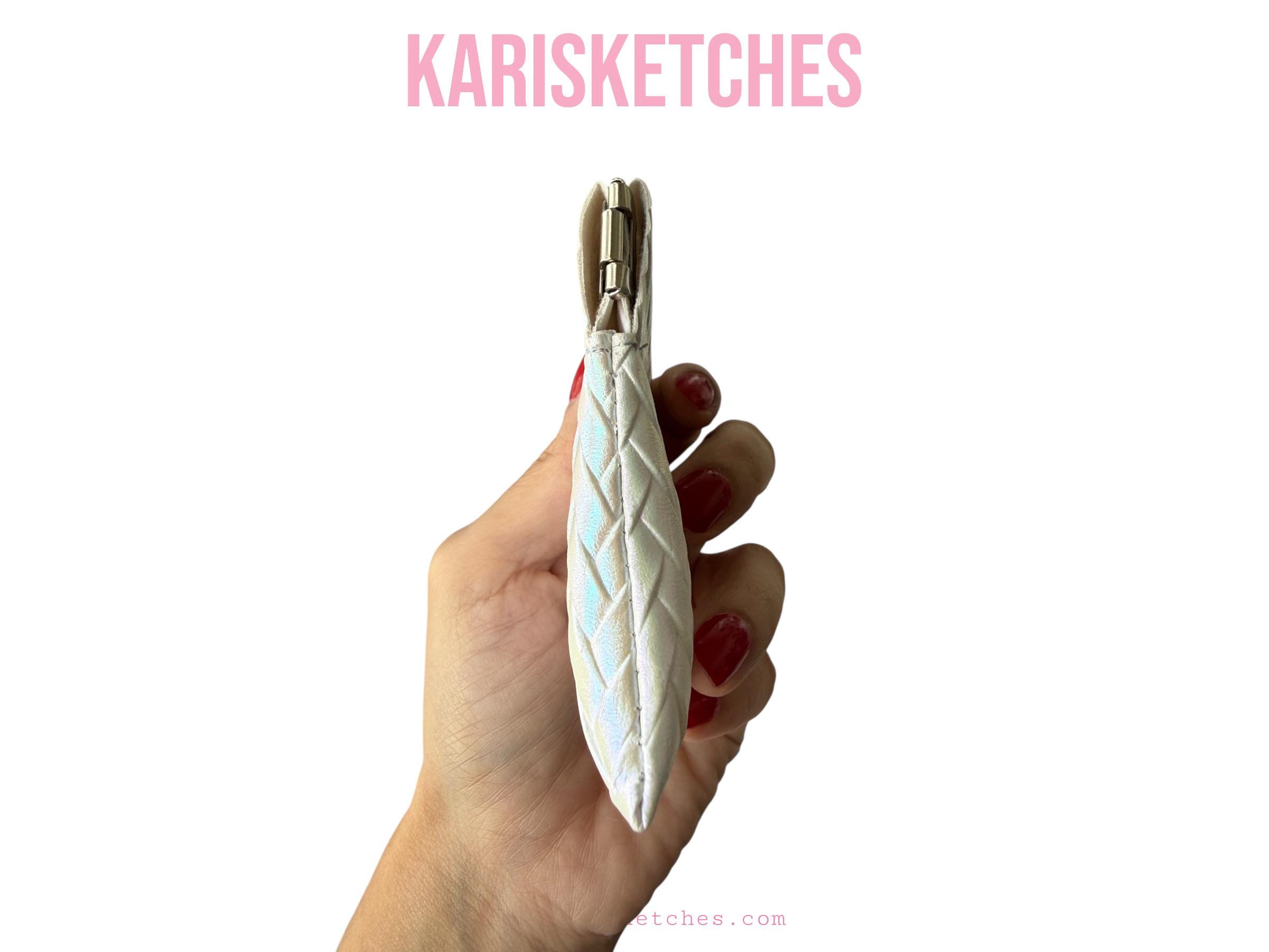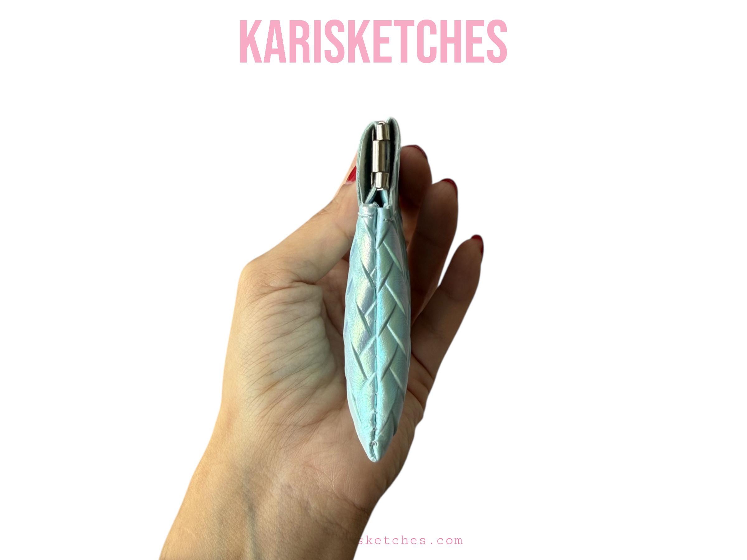 The Pop Open Coin Pouch measures 4” W x 3” H x ½” D and is a fun pouch to hold all that loose change or smaller items you may wish to secure!! This coin pouch has a hinged flex frame that when it is squeezed it will pop open.
